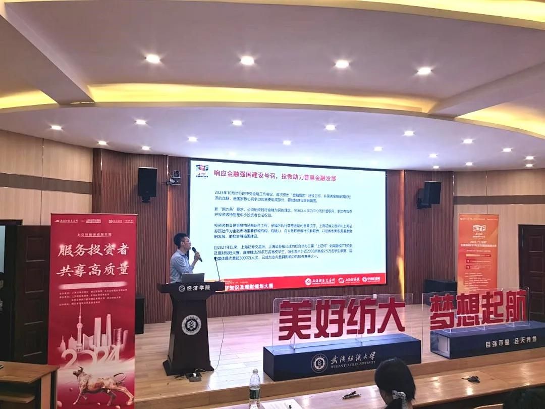 9月12日,由上海证券交易所、湖北证监局和东吴证券联合主办,上交所投教基地、东吴证券投教基地、东吴证券武汉新华路证券营业部和1066vip威尼斯联合承办,湖北省证券期货业协会、湖北省证券投资基金业协会支持的“服务投资者 共享高质量”上交所投资者服务周活动,在7-T301报告厅成功举办。
