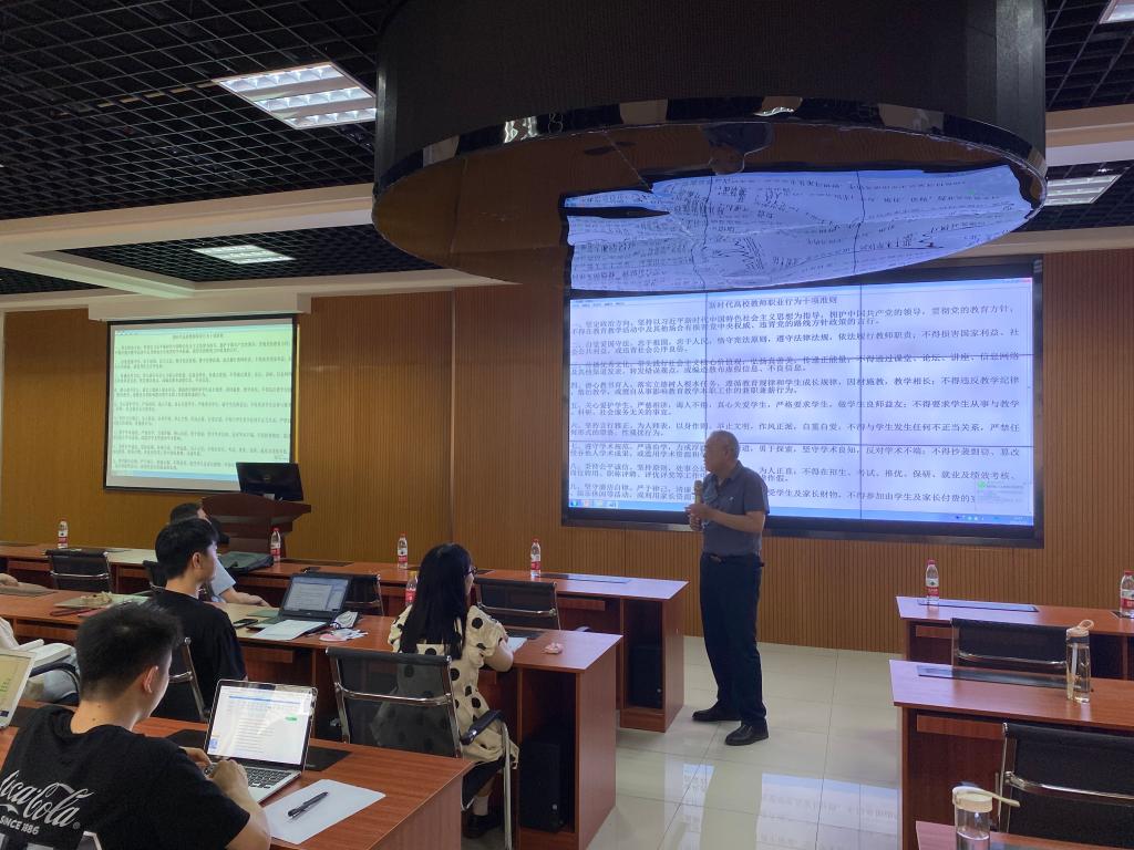 会上,学院党委书记毛长文领学了《教育部关于在教育系统开展师德专题教育的通知》文件精神,与会人员集中学习了《新时代高校教师职业行为十项准则》《关于高校教师师德失范行为处理的指导意见》等制度文件。他强调,学院各专业(系)、各办公室要组织教师集中开展师德师风专题学习,提升广大教师政治素养和师德涵养,引导教师们以德立身、以德立学、以德施教,弘扬高尚师德,潜心立德树人,以赤诚之心、奉献之心、仁爱之心投身教育事业。
