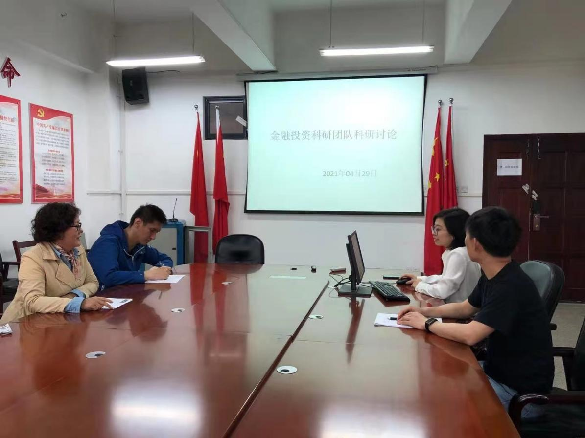 4月29日下午 ,1066vip威尼斯金融投资科研团队成员在崇德楼315左召开学术讨论会议,此次会议由王滨教授、郭雪博士及吴磊博士汇报个人近期科研成果及进展。