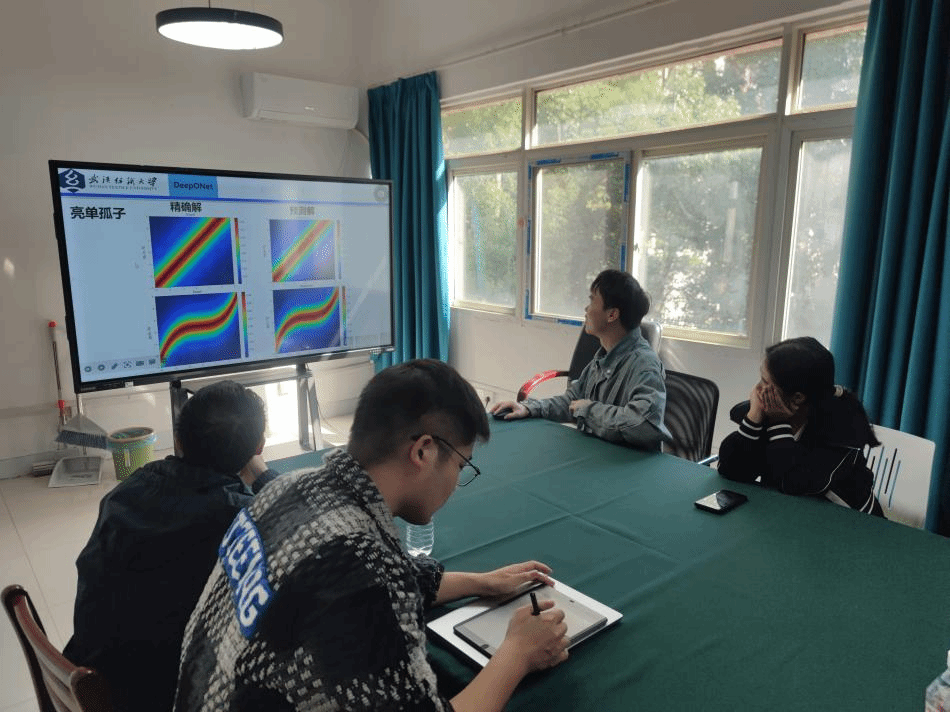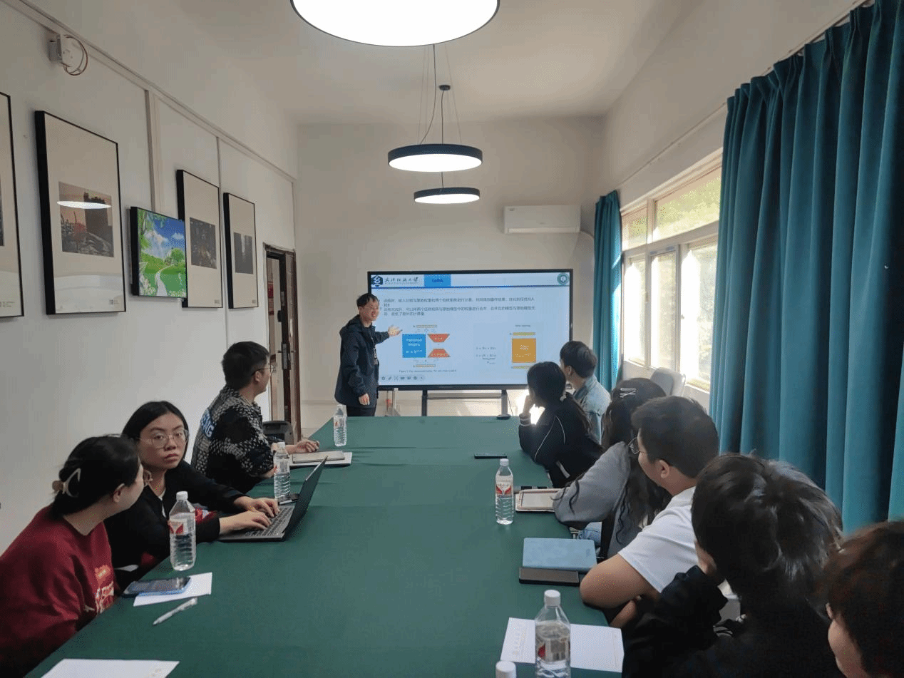 与会研究生徐苏勇详细讲解了大模型中的LoRA微调方法,通过低秩矩阵分解来限定参数更新的维度,从而降低模型的存储需求和计算成本,并将其应用于DeepONet模型。最后,他根据自身近期研究进度探讨了如何将数值仿真、深度学习与光纤实验相结合,以提升预测的准确性与应用的广泛性。