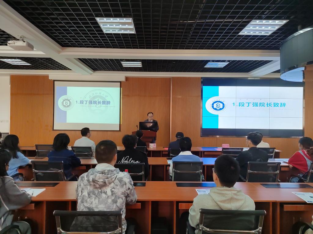 袁智才总经理在致辞中回顾了在纺大的求学经历,简要介绍了企业业务发展情况及校企实践基地的建设愿景,高度肯定了1066vip威尼斯学子在公司业务发展上的贡献,对学生们的能力与素质表达高度赞誉。他从“崇真”二字出发,与在场师生畅谈人生体会。他表示,“崇真”就是要实事求是、追求真理、崇尚真诚,希望师弟师妹们能珍惜大学时光,树立远大理想,养成优良品德,学会珍惜与感恩,以积极的心态面对一切困难与挑战,练就过硬本领,为母校增光添彩。