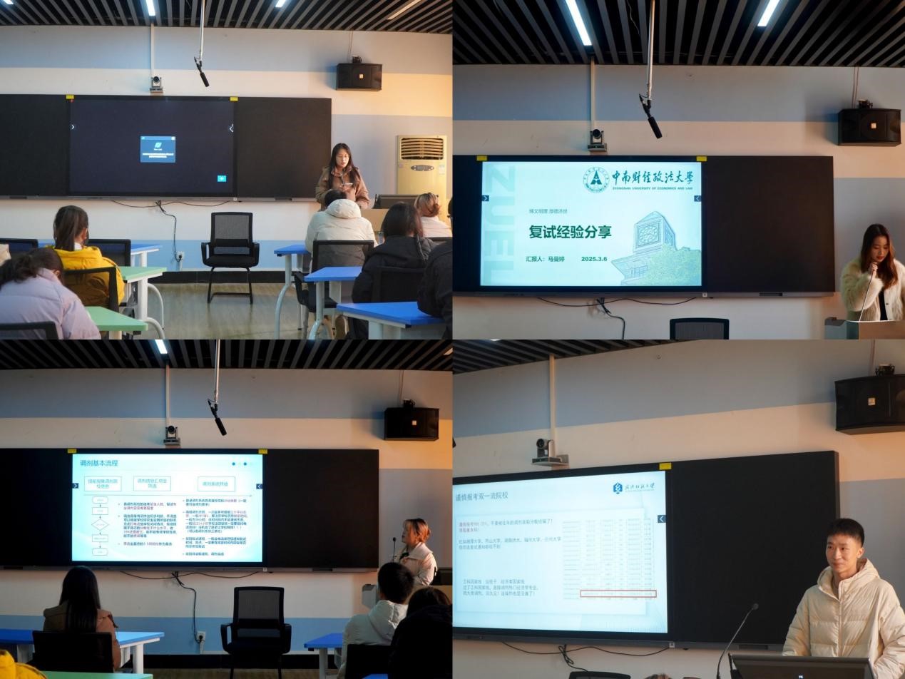 在研究生分享环节,马曼婷、李聪健、刘海燕、晁叙卓分别从复试准备要点、英语问答策略、形象与心态、导师选择建议四个方面展开讲解,为同学们梳理了复试中需要注意的细节,引发了同学们的共鸣。