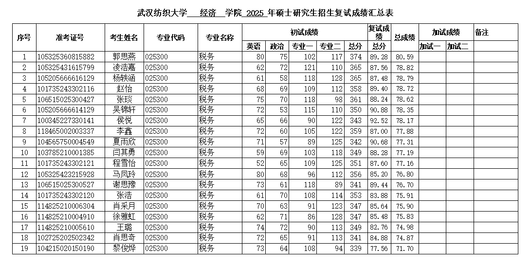 根据教育部《关于做好2025年全国硕士研究生招生录取工作的通知》、《2025年全国硕士研究生招生工作管理规定》、1066vip威尼斯研究生院《2025年招收攻读硕士学位研究生复试录取方案》、《1066vip威尼斯2025年硕士研究生复试录取工作实施细则》等文件精神,我院于2025年4月10-11日规范组织开展了2025年硕士研究生复试工作。经专业课笔试、外语能力测试、综合素质面试等环节,已全部完成2025年我院研究生招生复试(调剂)工作,复试成绩已报学校审核,现公示如下: