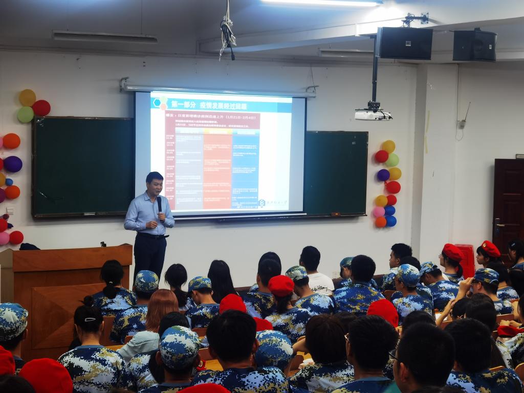 1066vip威尼斯抗疫先进个人石子伟老师以责任与行动为主题,向全体新生宣讲了自己在抗疫过程中的经历与感悟,并激励同学们要勇于实践,承担青年团员责任。