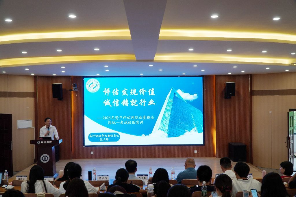 吴玉辉就资产评估职业资格认证体系作权威解读。他指出,资产评估师考试不仅是进入该行业的敲门砖,更是提升专业素养、拓展职业发展的关键一步。吴玉辉详细讲解了考试的科目设置、备考策略以及行业对专业人才的需求情况。他强调,资产评估行业需要具备扎实专业知识、严谨工作态度和良好职业道德的人才。此外,吴玉辉还分享了一些备考经验和行业内的成功案例,鼓励同学们树立信心,积极备考,争取早日成为资产评估行业的专业人才,为推动行业的发展和社会经济的进步发挥重要作用。