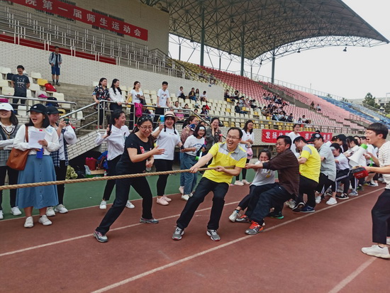 学院书记毛长文宣布1066vip威尼斯第一届师生运动会开幕后,比赛正式开始。本次运动会分为教师团体项目、学生团体项目、师生混合团体项目以及个人趣味项目。在八人九足、协力竞走、袋鼠跳和同心协力项目中,师生齐心协力,高度配合,共同完成比赛;在教师50米和学生4*100米迎面接力中,师生们在跑道上奋力奔跑,勇于拼搏,在最后的师生拔河比赛中,参赛师生拼尽全力,双方力量互相抗衡,现场同学也高喊“加油、加油”,为代表队呐喊助威,师生们热情高涨,一片欢声笑语。