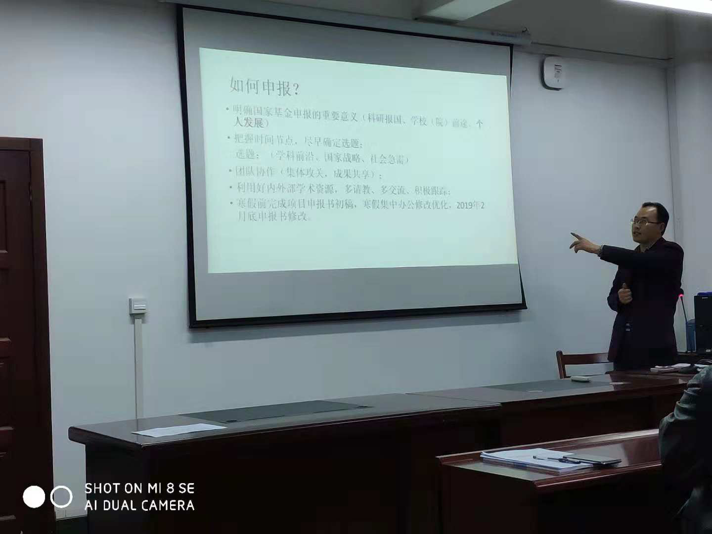 11月15日下午,1066vip威尼斯在7号教学楼412会议室召开了“国家基金申报动员大会”。会议由副院长倪武帆教授主持,学院全体教职工参加了会议。