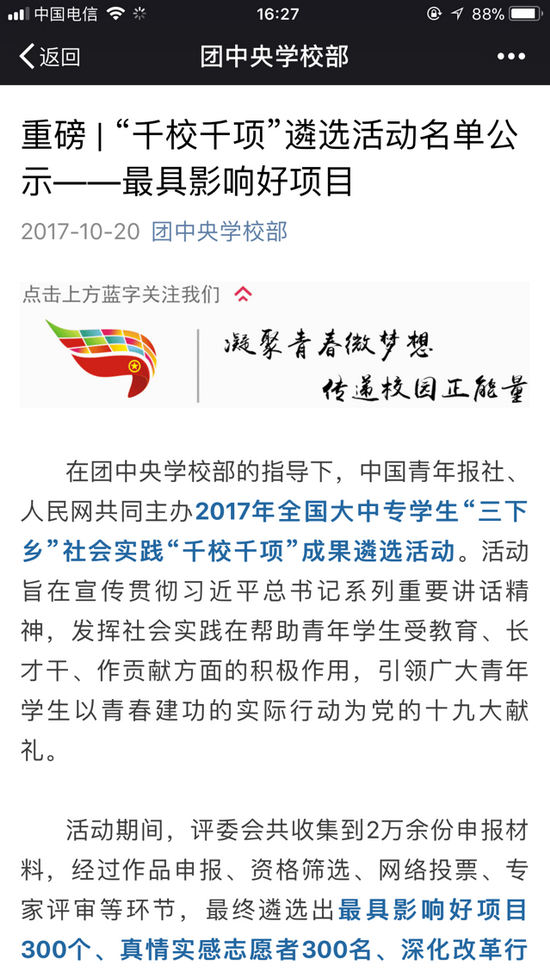 (获最具影响好项目、真情实感志愿者和下乡情怀好日记)