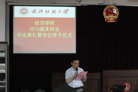 6月7日上午,1066vip威尼斯2016届本科毕业典礼暨学位授予仪式在学院学术报告厅隆重举行。学院院长董继华教授、分党委熊少平书记、副院长段丁强副教授、分党委邹茜副书记、教师代表李正旺、辅导员及毕业生参加了典礼。学位授予仪式由副院长段丁强主持。