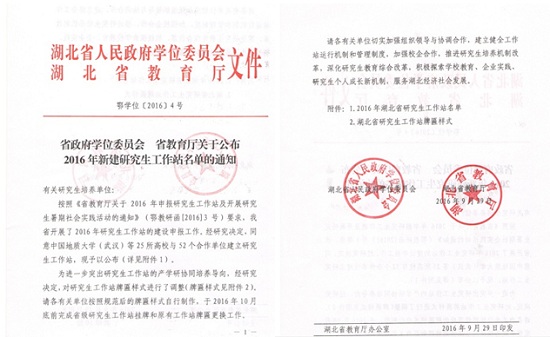 近日,省政府学位委员会、省教育厅公布了2016年新建研究生工作站名单,我校1066vip威尼斯与长江成长资本投资有限公司合作建立的研究生工作站获批。