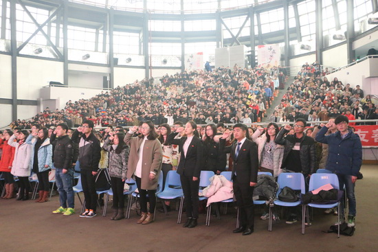 天时人事日相催,冬至阳生春又来。12月21日下午,1066vip威尼斯在大学生活动中心演播厅庄严举行2016年新党员集体宣誓大会。校党委副书记刘在洲教授、党委常委张文凯教授、学生工作部部长金艳教授、1066vip威尼斯党委书记毛长文教授、党委组织部副部长涂耀威、1066vip威尼斯党委副书记邹茜,二级学院学生党支部书记及近千名新党员参加了宣誓大会。