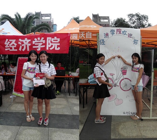 9月12日,1066vip威尼斯迎新点迎来了一对美丽的姐妹花。“这是我表妹,叫彭琳惠,被我们学院金融专业录取了。”就读于同一学院国贸专业的表姐杨紫璇热情介绍道。