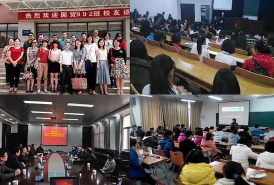 学院关注往届毕业生的就业动向,加强与校友的紧密沟通和联系,积极利用校友资源。今年以来,我院一大批老校友返校,共叙师生情谊。10月5日,922国贸班校友返校十年聚首;11月2日,我院10余名优秀校友返校,参加新一届校友大会;11月20日,我院校友、湖北中州投资担保有限公司董事长栾盛元率该公司高管一行5人返回母校洽谈合作事宜,签订校外实习基地协议;11月21日,我院84届财政专业毕业生、襄阳市财政科研所马善记所长为学院师生作学术报告。