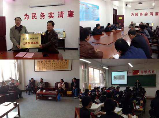 11月13日,1066vip威尼斯院长董继华教授一行三人,前往山西省大同县一中,代表学校与大同县一中签订优质生源基地协议书,举行“1066vip威尼斯优质生源基地”授牌仪式,并在该校高三学生中作了宣传报告。大同县教育局郭志宏、大同县一中校长曹中文等校领导出席了签约授牌仪式。