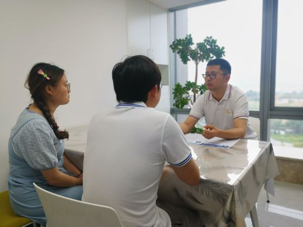 公司人力资源总监杨洁仔细查看朱宝、原啸菲的简历,耐心回答他们的问题,一一指出简历需要改进的地方,同时将他们带到面试间由公司HR组织现场面试。HR在客观评价两位毕业生的理论基础、专业素养及入职意愿后,表达了愿意接纳的意向。