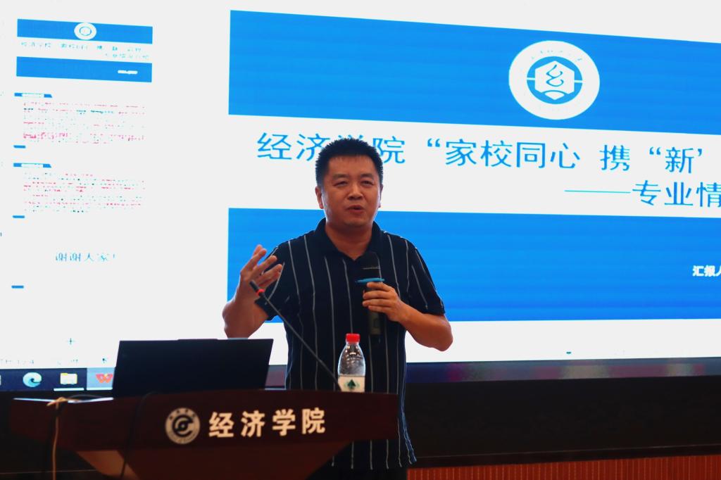 新生辅导员汪伦介绍了年级及日常管理情况,使家长对新生班主任和孩子的大学日常生活有了一定了解,对孩子未来的生活更加安心、放心。