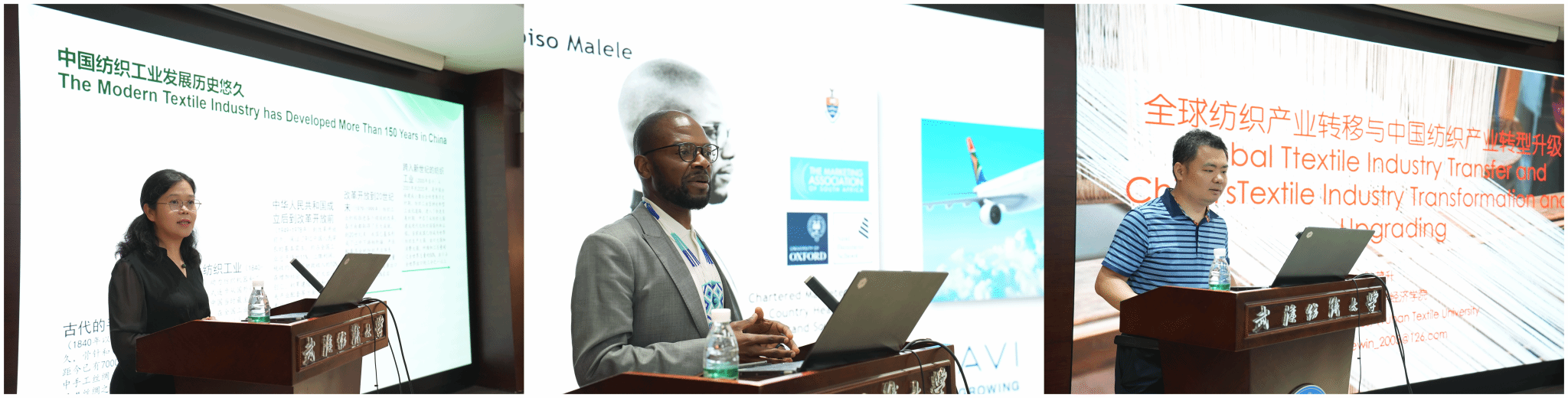 开幕式后,中国纺织工业联合会产业经济研究院院长华珊、品牌南非中国区负责人马莱勒·世皮萨·崔若、1066vip威尼斯教授叶茂升分别围绕本届论坛的主题进行主旨报告,分享最新的研究成果、前沿技术及深刻见解。此外,本次论坛还专门设置了“‘一带一路’倡议下中国与发展中国家纺织品服装产业合作机遇与挑战”“中国纺织服装产业发展成功经验及其对非洲国家的启示”“技术创新与产业转型升级在纺织品服装产业中的实践”“中非纺织品服装产业国际产能合作中的风险管理与市场准入问题”等四个专题,品牌南非研究部经理Lefentse Nokaneng、湖北万里防护用品有限公司董事长刘万里、武汉联好防护用品有限公司董事长夏新明及1066vip威尼斯专家学者等与会人员围绕专题开展圆桌讨论,促进跨国界、跨学科、跨领域的思想交流与合作,共同探讨纺织产业未来发展趋势与面临的挑战。