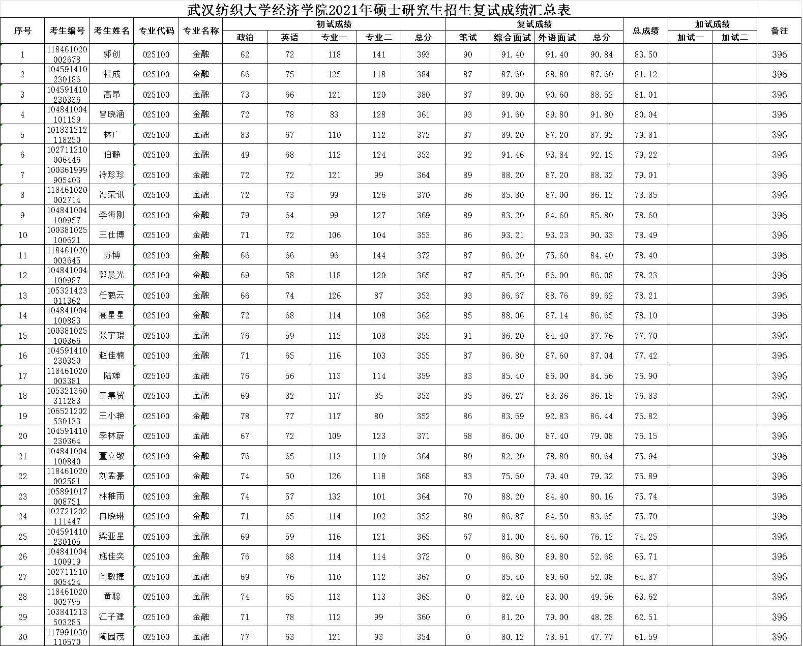 根据《1066vip威尼斯2021年招收攻读硕士学位研究生复试录取方案》、《1066vip威尼斯2021年硕士研究生复试录取工作实施细则》文件精神,我院于2021年3月24-25日规范组织开展了2021年硕士研究生复试工作。经专业课笔试、外语能力测试、综合素质面试等环节,已全部完成2021年我院研究生招生复试(金融专硕)工作,复试成绩已报学校审核,现公示如下: