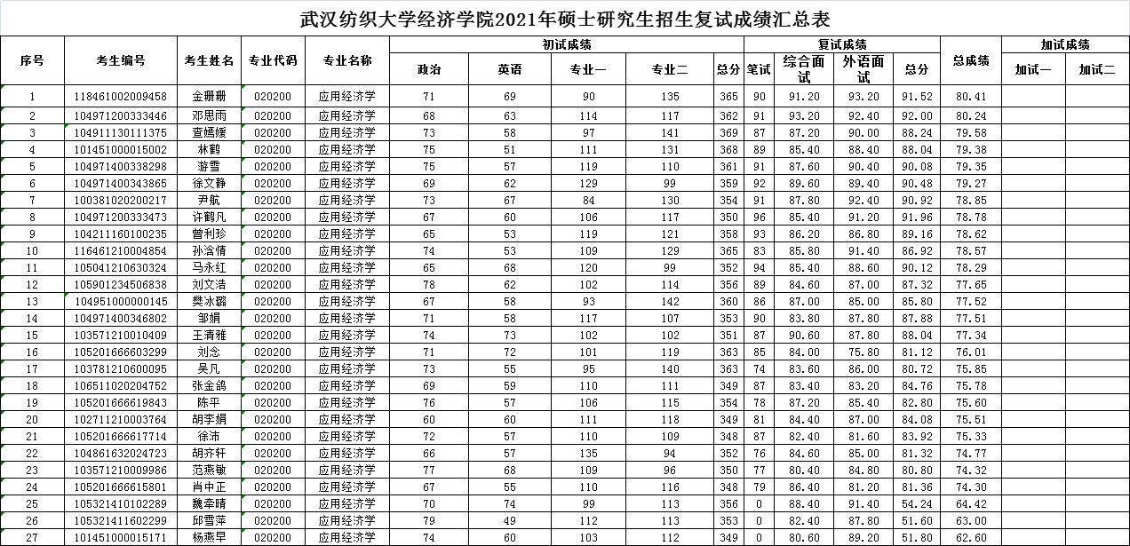 根据《1066vip威尼斯2021年招收攻读硕士学位研究生复试录取方案》、《1066vip威尼斯2021年硕士研究生复试录取工作实施细则》文件精神,我院于2021年3月24-25日规范组织了2021年硕士研究生复试工作。经专业课笔试、外语能力测试、综合素质面试等环节,已完成2021年我院研究生招生复试(应用经济学学硕)工作,复试成绩已报学校审核,现公示如下: