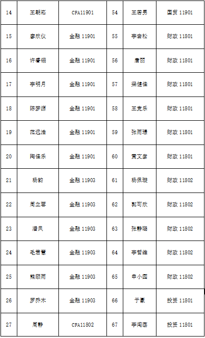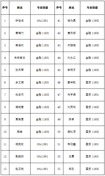 通过各班团支部推选优秀学生为预备党员候选人,经金融学生一支部、金融学生二支部、国贸学生党支部、财投学生党支部对候选人员进行考察,在一年考察其中将表现优秀的入党积极分子上报学院党委。现经学院党委研究,拟发展通过各班团支部推选优秀学生为预备党员候选人,经金融学生一支部、金融学生二支部、国贸学生党支部、财投学生党支部四个学生支部对候选人员进行考察,在一年考察其中将表现优秀的入党积极分子,上报学院党委。现经学院党委研究,拟定钟世成等80名同学为预备党员,现予以公示。公式期为: 2021年4月22日-2021年4月28日。如存在对以上同学在学习、生活中的情况有异议的,可向1066vip威尼斯党委反映。具体名单如下: