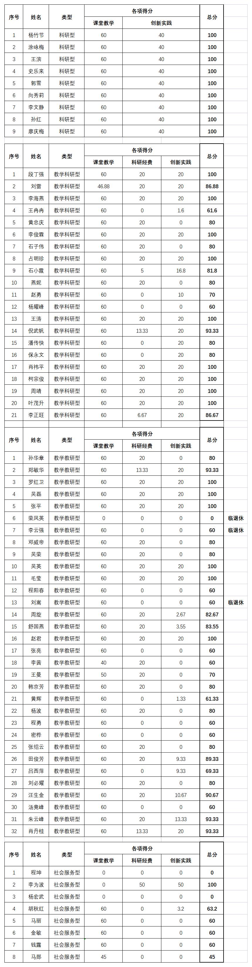 根据学院2022年颁布的《1066vip威尼斯教科研业绩考核激励管理办法》,通过对学院专职教师2022年度完成的课堂教学、科研经费和创新实践情况的统计计算,现将考核总分进行公示。