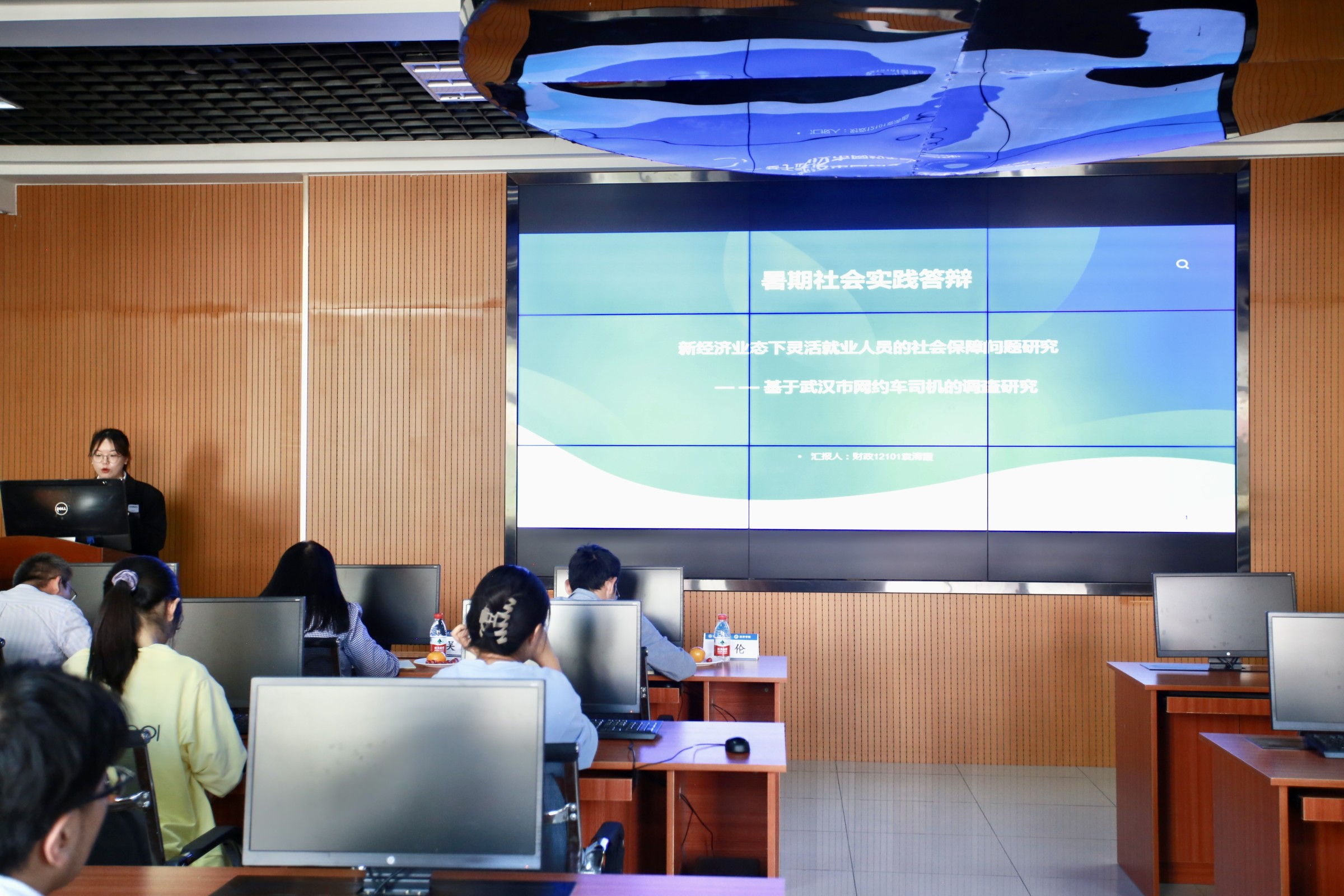 主讲人们围绕“乡村振兴”、“科技赋能”、“红色精神”、“社会保障”等思政课题,从实践地点介绍、实践成果展示、实践心得体会等方面展开,详细介绍了实践中遇到的问题及解决方案,分享了一路以来的心路历程,分析了自身的不足之处。晏雨涵、龚启佳以图文相结合的形式,展现了许家冲村的现有风貌;张梓璇介绍了当地蚕产业的发展现状以及生存困境;陈文慧结合时代问题,带领大学生们感受红色革命精神;桑宇清指出了产业融合项目的发展状况和前景;喻洲林展示了农村三产融合模式的发展现状……随后,评委老师对各团队的汇报进行点评,并表示充分的肯定。财税系主任周靖指出,有些团队在主题命名方面略显广泛,但总体上各团队的报告逻辑清晰、论证严密。其中,国贸12201陈文慧、财政12101袁清霞、税收12101刘航、税收12101喻洲林四位同学成功晋级。
