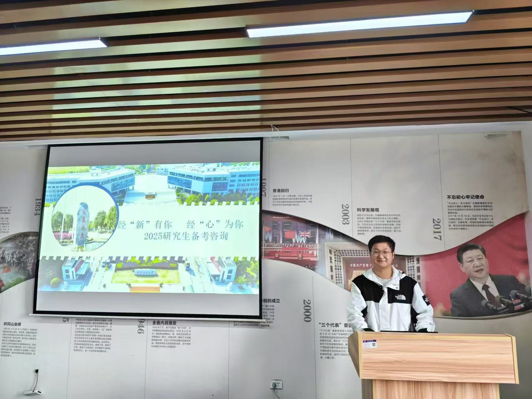 在宣讲中,邓子扬同学通过现场讲解和互动交流等多种形式,详细介绍了1066vip威尼斯的办学历史、师资力量、教学设施、科研实力以及金融专硕项目的课程设置、培养方案、就业前景等。同时,邓子扬同学在从自己的备考经历和专业课学习上等角度向学弟学妹们分享考研心得,并热烈欢迎各位优秀学子报考1066vip威尼斯。