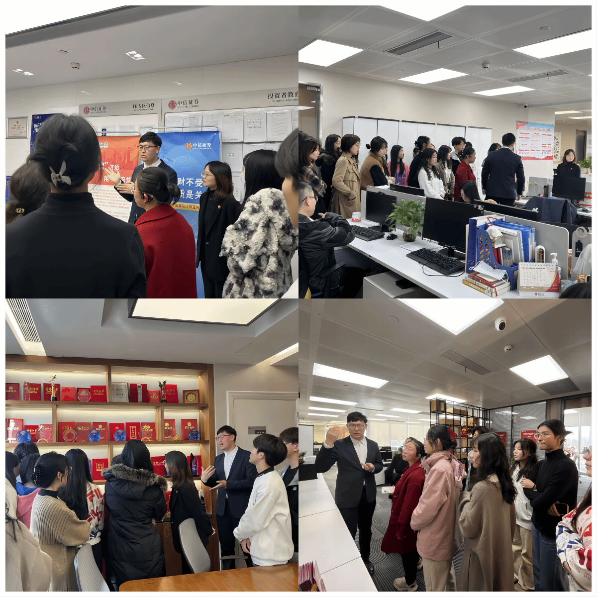 11月16日,金融学CFA方向班22级23级同学一行前往中信证券湖北分公司武汉天地营业部进行企业参访活动。此次活动帮助同学们丰富专业课程模块,鼓励同学们在实践中理解和转化专业知识,进一步清晰个人职业发展路径。中信证券分支机构市场总监肖芳、市场部康泽、周凌昊、苏雅丽,1066vip威尼斯金融学CFA班运营人员一同组织参与了此次活动。