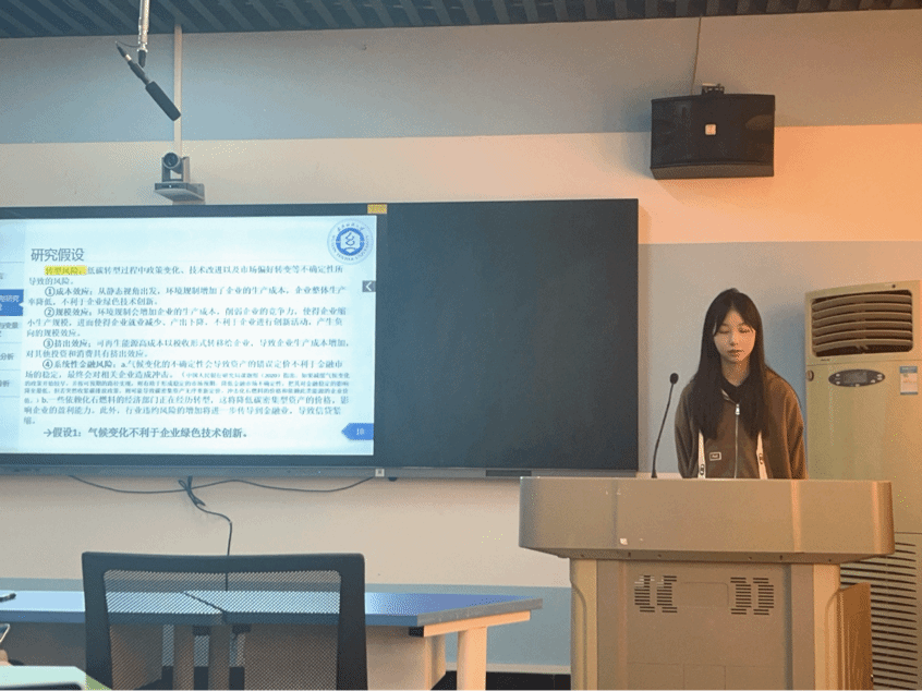 论坛上,五名主讲人分别从研究背景、研究思路以及研究结论等方面分享他们最近的学术研究成果。卫舒扬同学解读了她最近阅读的一篇文献,并提出个人的见解与启示;田琪瑶同学从产业链供应链韧性的角度,进一步分析中间品进口竞争对创新的影响;周廷华同学运用中介模型,验证数字经济在支持农业高质量发展方面的有效性及其作用机制;刘佳欣同学实证检验了气候变化对企业绿色技术创新的影响;刘畅同学基于高管技术背景的视角,提出数字化转型对企业数实技术融合的影响研究。每位同学将自己的研究方法和研究成果从各自不同的角度进行阐述,数据详实,内容完整,循序渐进,深入浅出,充分展现出我院研究生的学术实力和科研水平。