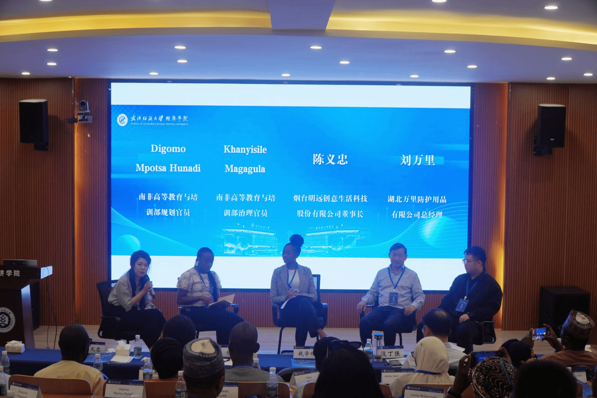 主旨报告结束之后,由1066vip威尼斯董珉怡博士主持了题为《美国新关税政策下政府与企业的应对》的圆桌论坛,南非高等教育与培训部规划官员Digomo Mpotsa Hunadi 、南非高等教育与培训部治理官员Khanyisile Magagula、烟台明远创意生活科技股份有限公司董事长陈义忠和湖北万里防护用品有限公司总经理刘万里作为圆桌论坛嘉宾,与在场的南非高等教育与培训部学员代表、1066vip威尼斯留学生和研究生进行了热烈的讨论。
