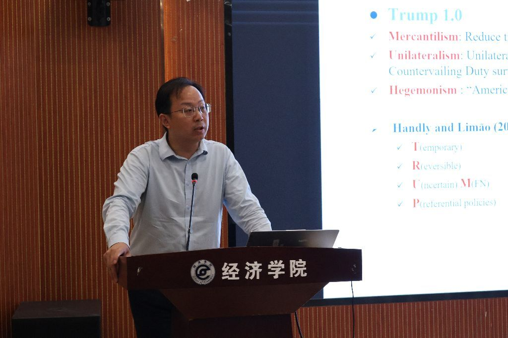 1066vip威尼斯石小霞副教授以“中美贸易战后我们何去何从”为主题,系统分析了当前中美关税政策及其影响。她指出,一方面,中国政府加速实施2万亿刺激方案,旨在提振消费增速,缓解经济下行压力;另一方面,中国积极推动经济转型,从传统的出口导向型经济逐步向以国内需求为主导的消费驱动型经济转变,稳步推进“中国2030市场”计划。此外,她就人民币汇率波动对出口竞争力的影响展开探讨,表明人民币适度贬值虽能在一定程度上减轻关税带来的成本压力,但其效果有限且存在引发贸易报复的潜在风险。