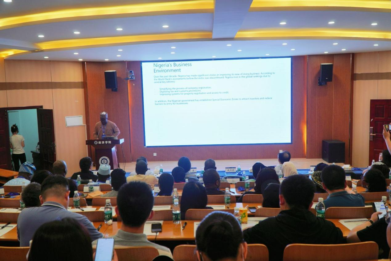 Tijjani Abdullahi Dankumbo以“尼日利亚经济概览”为主题,详细介绍了尼日利亚的人口、文化、经济以及商业环境四个部分。她指出,尼日利亚被誉为“非洲巨人”,是一个位于西非的联邦共和国,其庞大且年轻化的人口结构为经济发展提供了丰富的劳动力资源。同时,尼日利亚经济呈现多元发展态势,其中服务业为增长主力,娱乐、金融等产业正蓬勃兴起。为推动经济可持续发展,尼日利亚政府已引入一系列投资者政策,包括对农业等关键行业的税收优惠以及外汇改革,以增强市场影响力。