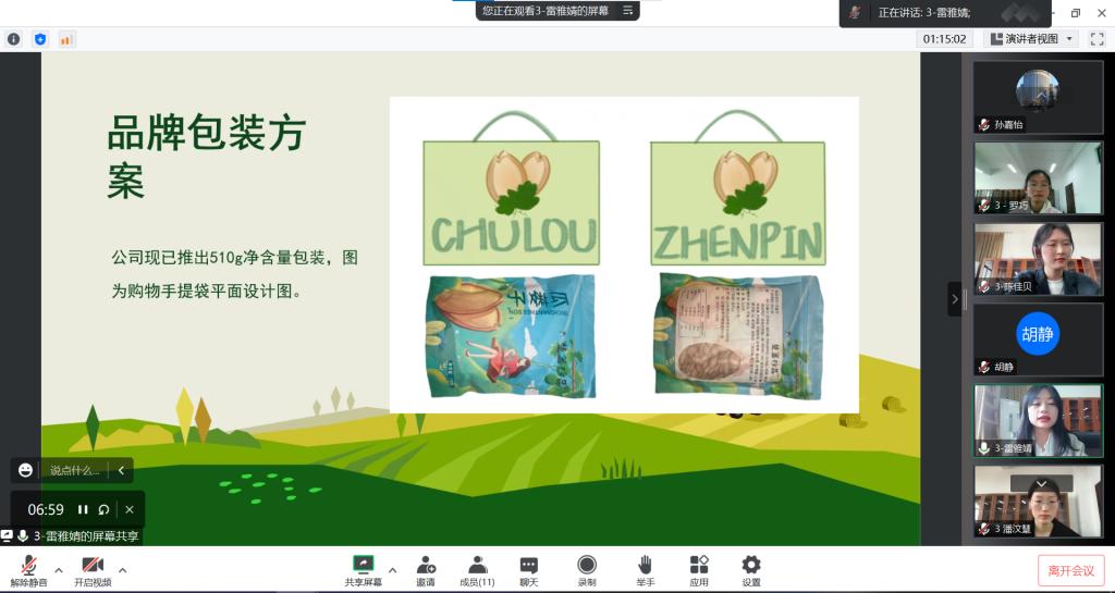 此次校级决赛全程模拟省赛形式,整个决赛答辩分AB组持续近6小时。决赛评委由浙江森马电子商务有限公司直播运营经理陆雨薇、深圳市倍轻松科技股份有限公司抖音短视频高级运营专员曾圣鹏、武汉合达智汇科技咨询有限公司合伙人季明义、武汉贝尔卡药业外贸业务总监吴彬、武汉光之谷文化科技股份有限公司行政总监胡静等6名校外企业销售业务负责人、电商平台运营负责人担任。参与决赛答辩的37支团队分别围绕“品牌形象和现状分析的准确性、品牌定位的正确性、品牌元素设计的创意性、品牌推广与传播的可行性、品牌资产保护及风险管理的全面性、与品牌策划与实施相关的财务预算的合理性”等维度进行了10分钟的品牌策划方案陈述,评委根据策划案与项目陈述情况,根据个人工作实际经验进行5分钟提问,综合考察团队“内容完整程度、问题识别、切题回应度”等方面表现情况。