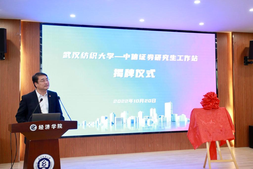 为创造优秀的研究生就业条件,10月20日下午,学院于崇德楼T301举行“1066vip威尼斯—中信证券研究生工作站”揭牌仪式。学院班子成员及全体教职工参与揭牌仪式,本次仪式出席嘉宾有中信证券湖北分公司总经理孙洪涛,中信证券武汉天地营业部总经理黄颖,营业部区域总监肖芳,营业部客户经理舒悦、余文琪。仪式由院长段丁强主持。