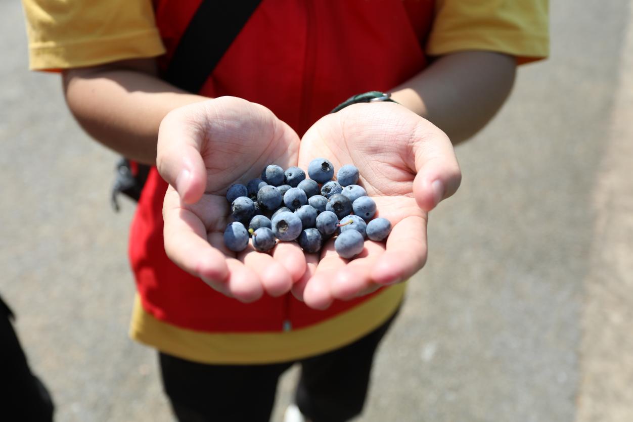 在相关负责人员的带领下,实践队员深入了解蓝莓产业的发展情况并与当地种植户进行了沟通与交流,学习种植与采摘过程中的细节与难点、蓝莓的生长周期以及蓝莓的保藏工序。蓝莓基地作为乡村振兴的重要组成部分,在促进当地就业、推动乡村经济发展以及改善生态环境方面发挥了积极的作用。
