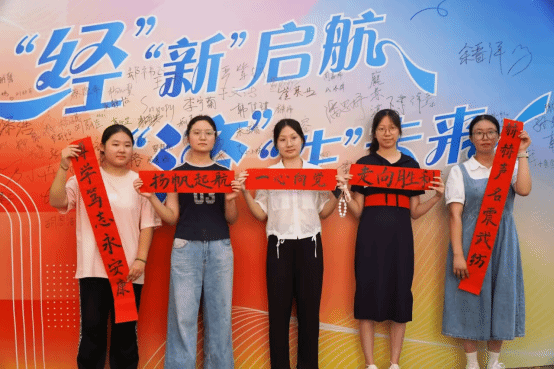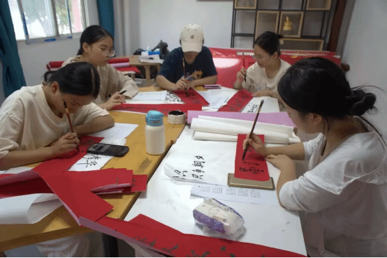 由新生创作,学院老生们一笔一墨撰写的楹联,饱含情感,于红纸间显现着笔墨丹青的独特魅力,浸润的是优秀传统文化,续写的是友谊深厚。24级新生王津津说:“来报到时,远远就在寝室门口看到我们创作的这副对联,我们感到很温馨。”在学长学姐们细心地指导与协助下,这些楹联被端端正正地贴在了宿舍门前,仿佛是一道道文化的风景线,点缀着宿舍。“车列山前必有路,景明不负韶华归”,其中一副楹联如此写道,借用了古诗之意,寓意着她们对生活积极向上、乐观进取的态度和对美好未来的期许。