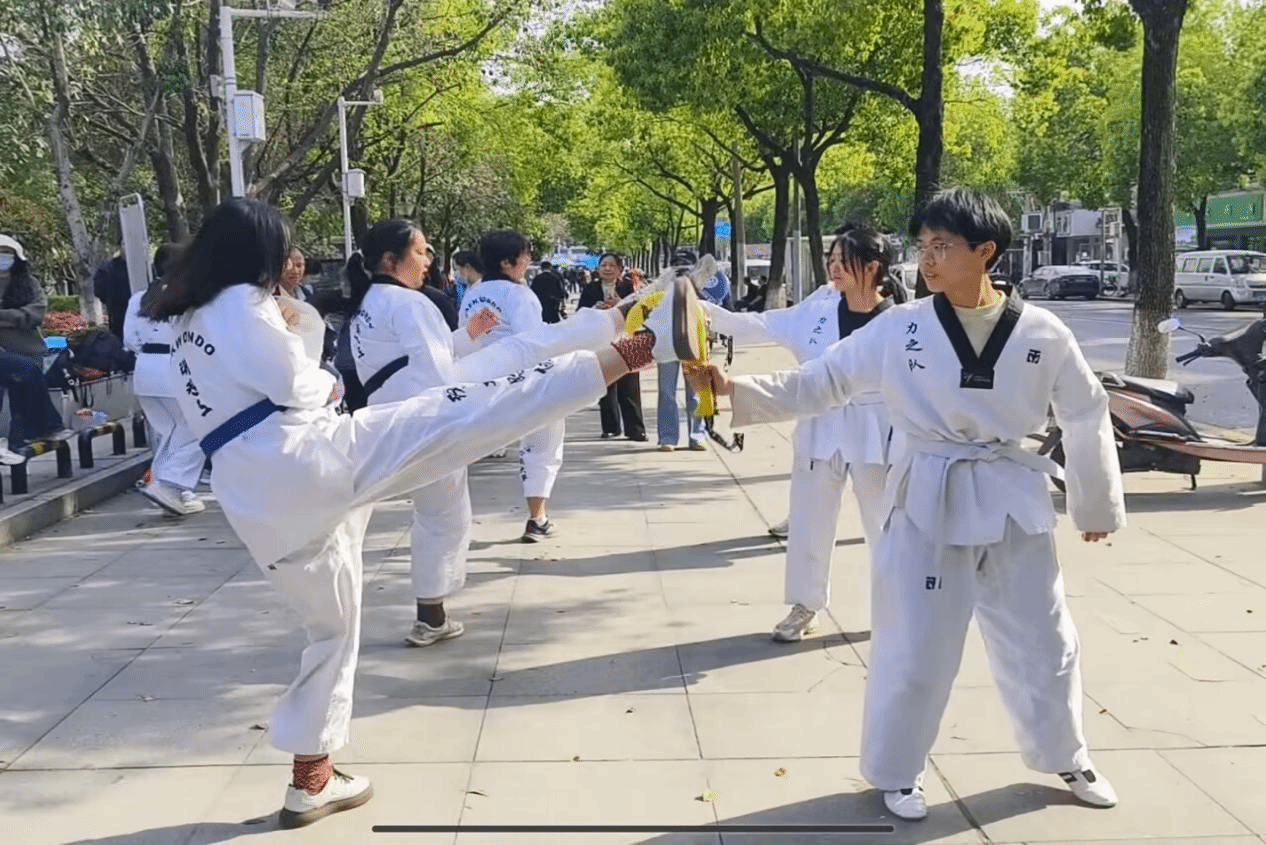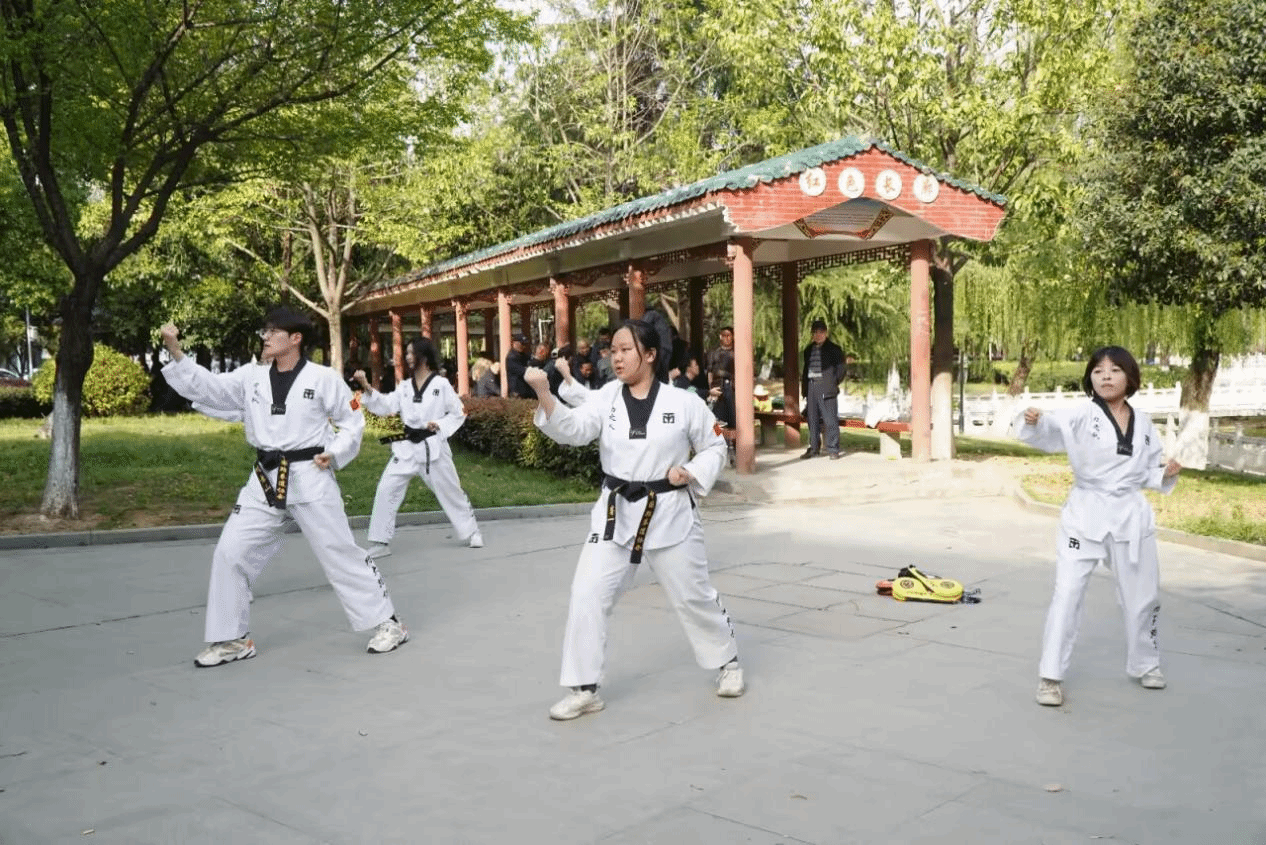 跆拳道社以刚劲利落的动作和整齐划一的队形献上压轴表演,将现场气氛推向高潮。表演结束后,社员引导居民参与互动环节,通过一些基础动作教学,让居民在掌握识骗要领的同时体验运动乐趣,活动现场掌声迭起,笑语不断,实现安全教育与社区活力的深度融合。