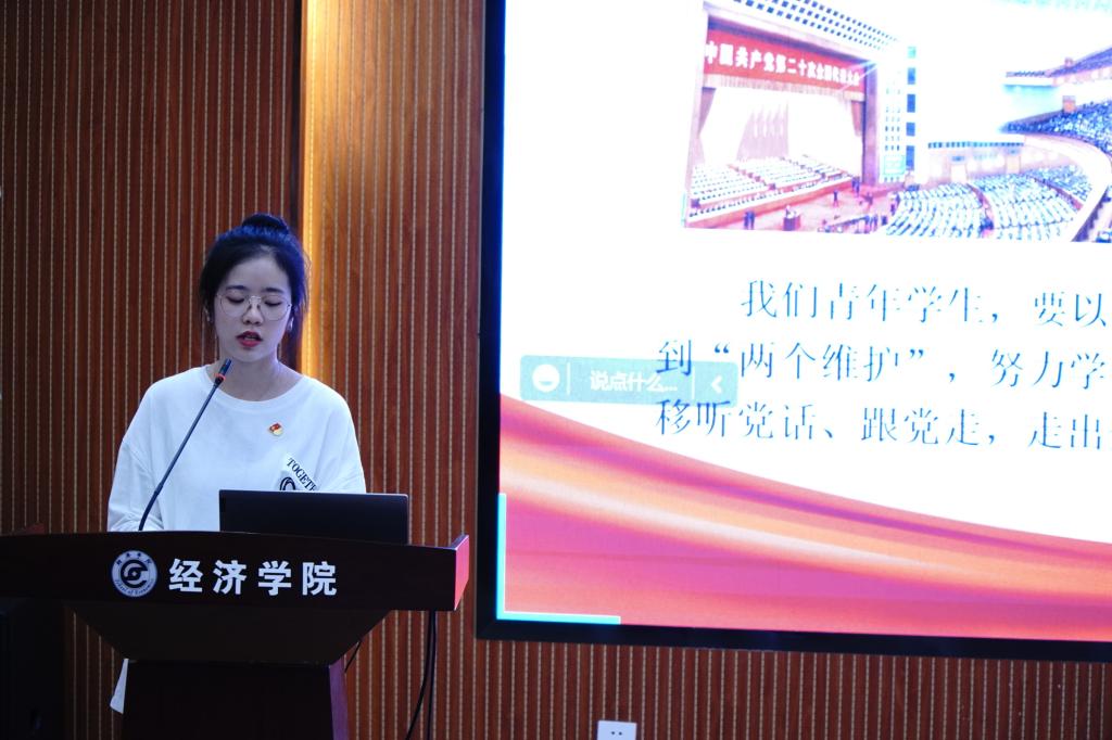 围绕“为与不为:新时代青年大学校园成长法则”这一主题,凌杰分别从做文明礼貌的人,不做“键盘侠”和“杠精”;做认真负责的人,不潦草“随性”;做积极乐观的人,不传播“负能量”;做能力突出的人,不做被“抛弃”者四个方面向同学们提出美好期许。他强调,大学生应端正学习态度,脚踏实地,不尚空谈,遵守学校的各项规定。凌杰的宣讲启发同学们认真思考,在22级新生中引起强烈反响。随后,学院信仰宣讲团成员、金融12002班向淼同学进行党史宣讲,在场同学均表示受益颇丰。