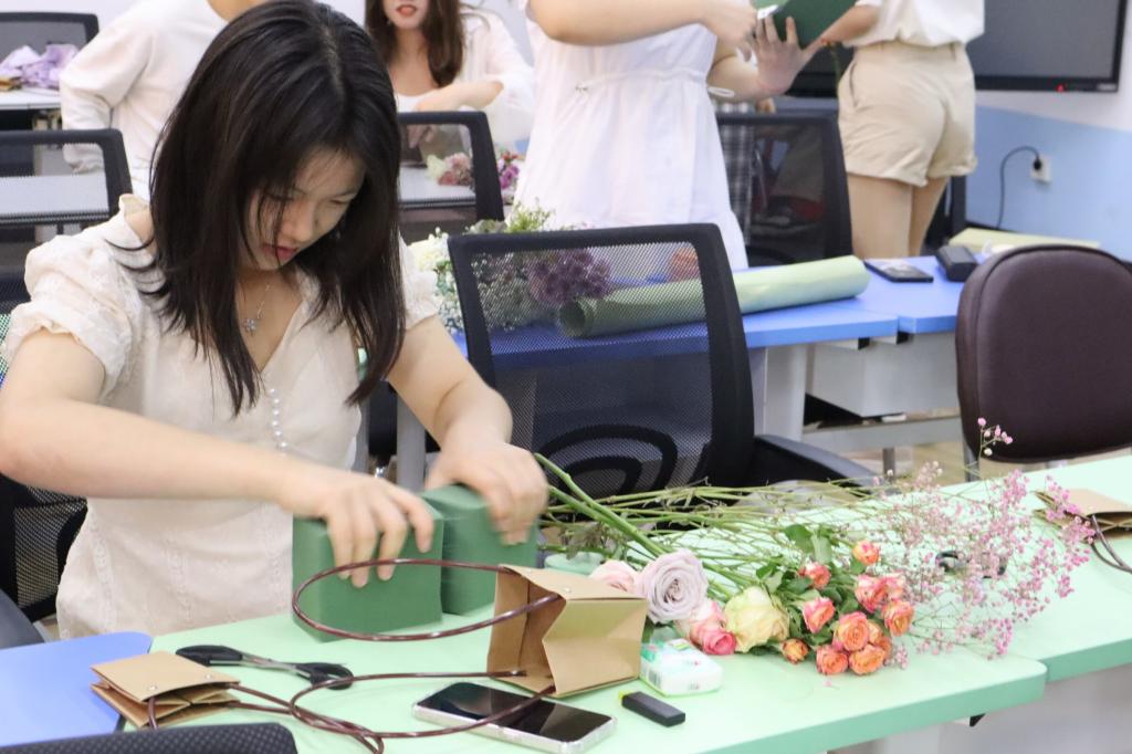 为缓解学生学习压力,提升学生生活品位和艺术修养,丰富学生精神文化生活,学院于5月30日下午在崇德楼305开展“指尖优雅,花漾绽放”花艺沙龙活动。