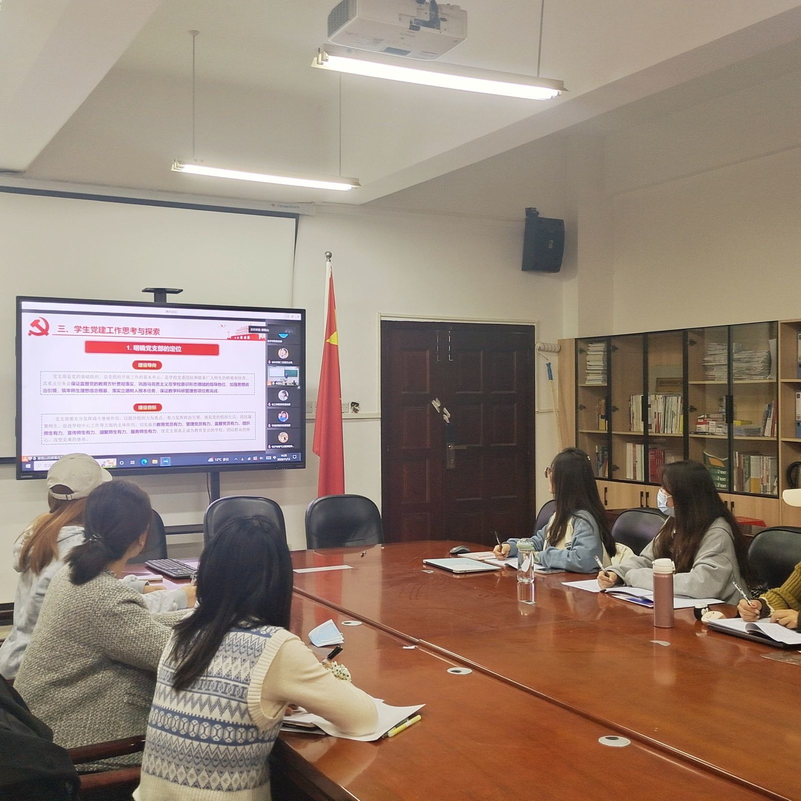 为组织学校各党支部深入学习、集中交流,贯彻落实校党委部署要求,11月13日,2022年度校学生党支部书记培训班在阳光校区9号教学楼320、322教室举行。学院各学生党支部书记到场参加培训,各学生党支部副书记于崇德楼315(左)会议室以线上方式观看学习。