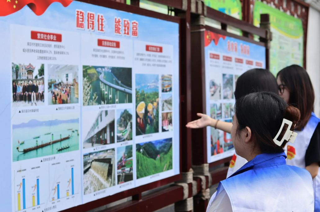 图为团队成员学习许家冲村多年来乡村振兴建设成果