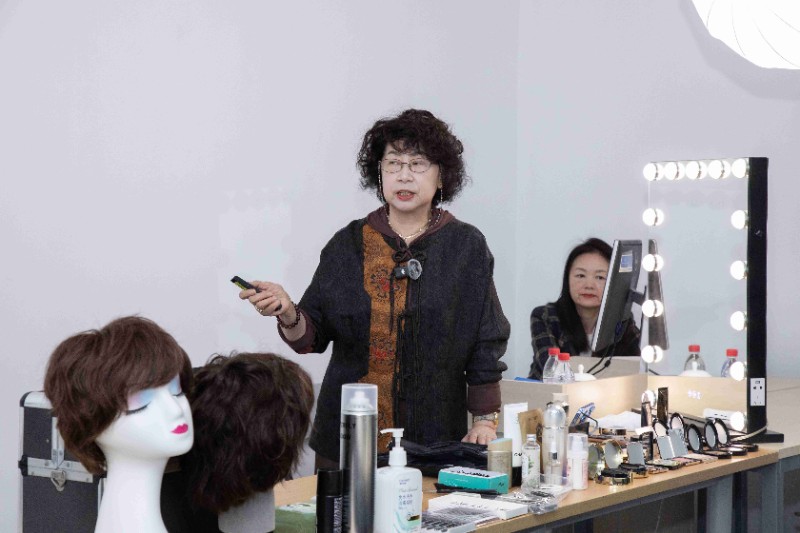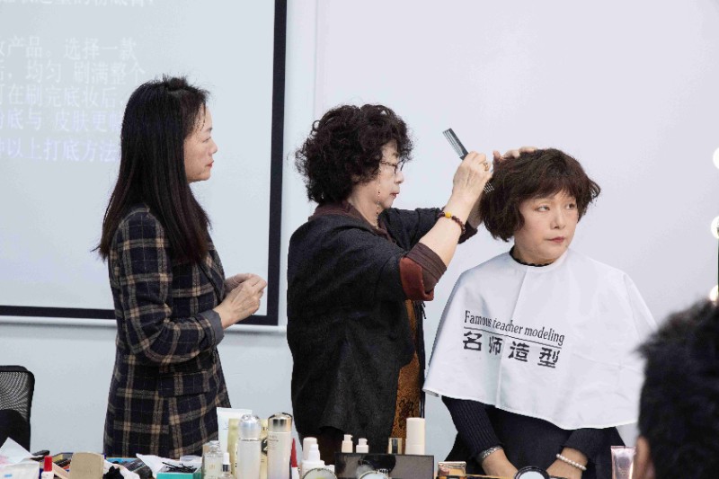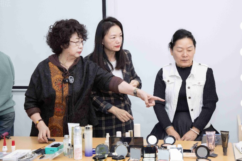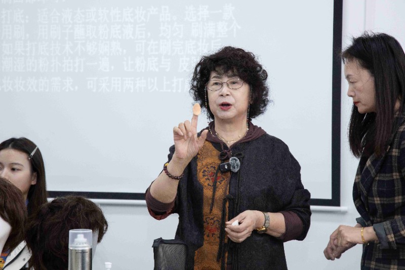 在白丽君美妆造型艺术工作室课堂上,白丽君老师继续为大家带来了令人惊艳的粉底打底妆容。只见她巧手翻飞,粉底如同细腻的轻纱,轻轻地覆盖在模特的肌肤上。