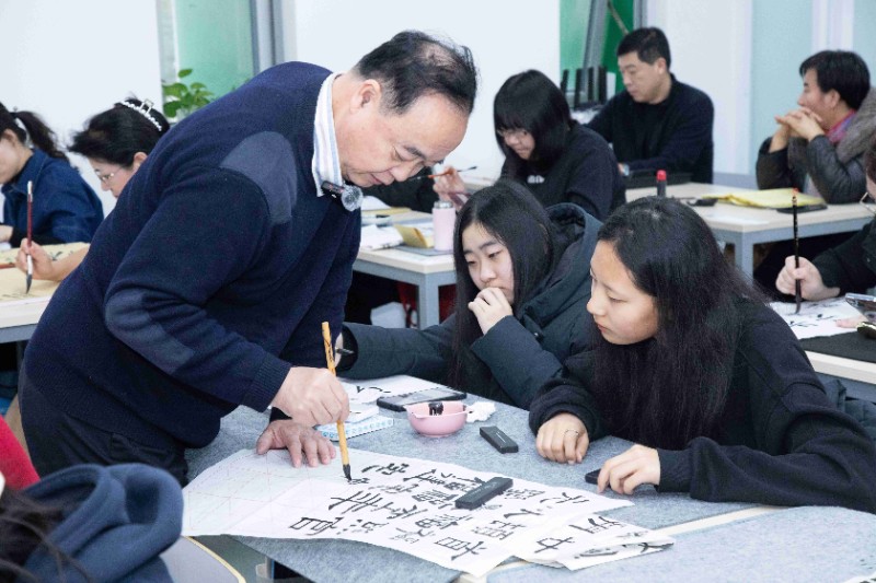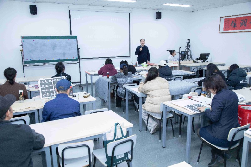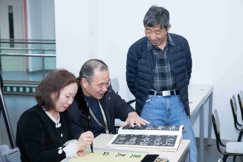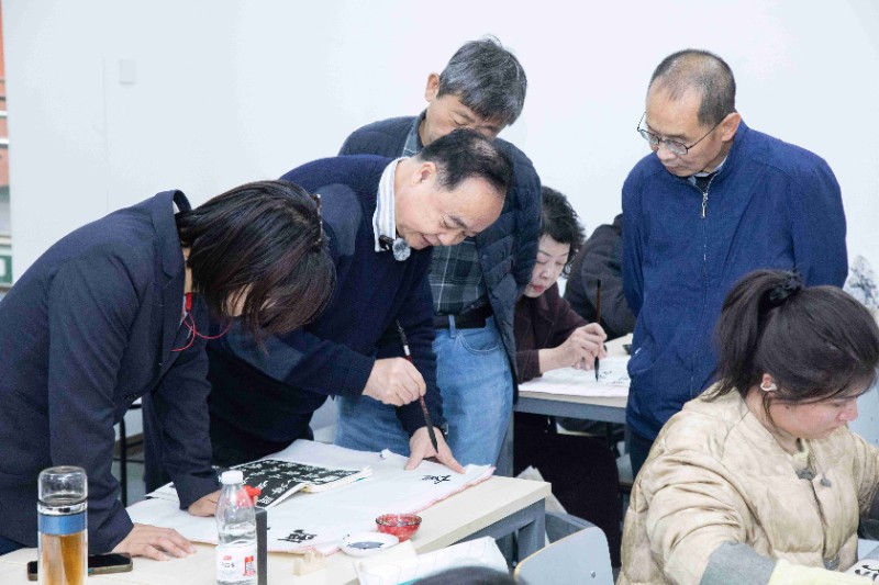 今日下午,廖教授带来了一场令人叹为观止的《史晨碑》临帖中笔划书写与常见笔病课程。正如朱熹所言:“读书之法,在循序而渐进,熟读而精思。读书有三到,所谓心到、眼到、口到。”廖教授授课亦是心、眼、口并用,他从偏旁部首起始,认真示范,耐心讲解,将临帖和创作的精妙之法倾囊相授。书法与国学本就密不可分,在授课过程中,廖教授更是将二者完美融合。他不仅精心指导学员,还亲自写好示范笔墨带到课堂展示,让大家研习。经过廖教授几次课程的悉心教诲,部分学员进步神速,其书法水平大幅提升,赢得了廖教授的称赞。